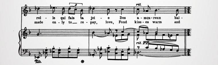 Let’s take a look at “Lydia” by Fauré. In this text we find this line: “Laisse tes baisers de colombe”